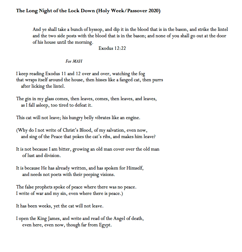 Written by Apoc18:4April 10, 2020April 10, 2020 The Long Night of the Lock Down (Holy Week/Passover 2020) Share this: Email a link to a friend (Opens in new window) Email Share on X (Opens in new window) X Share on Facebook (Opens in new window) Facebook Like Loading... Related Leave a comment Cancel reply Δ
