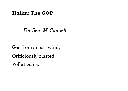 Written by Apoc18:4December 26, 2020December 26, 2020 Haiku: The GOP Share this: Share on X (Opens in new window) X Share on Facebook (Opens in new window) Facebook Like Loading... Related Leave a comment Cancel reply Δ