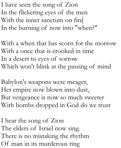 Written by Apoc18:4June 17, 2025 The Song of Zion Share this: Share on X (Opens in new window) X Share on Facebook (Opens in new window) Facebook Like Loading... Related Leave a comment Cancel reply Δ