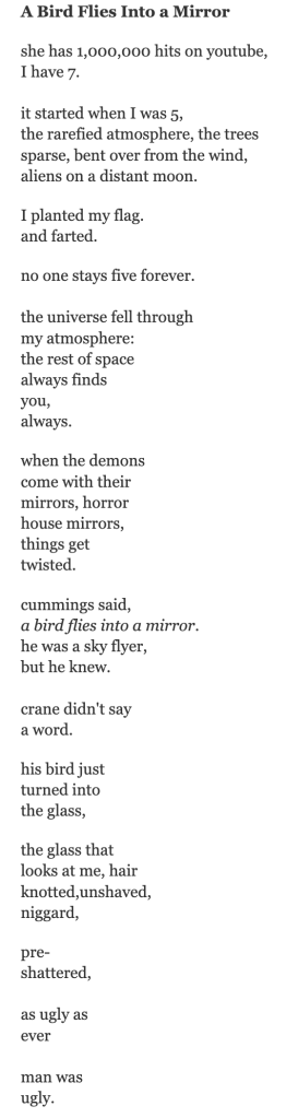 Written by Apoc184April 13, 2026 A Bird Flies Into a Mirror Share this: Email a link to a friend (Opens in new window) Email Share on X (Opens in new window) X Share on Facebook (Opens in new window) Facebook Like Loading... Related Leave a comment Cancel reply Δ